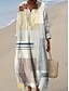 Mulheres Vestido Longo Vestido de turno Vestido A Line Vestido de verão Casual Diário Normal Listrado Manga 3/4 Decote V Branco Verão Primavera Outono