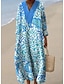 Mulheres Vestido Longo Vestidos Para o Verão Vestido de turno Férias Casual Praia Para Noite Ajuste Largo Gráfico Geométrica Abstrato Manga Longa Decote V Azul Marron cáqui Verão Primavera