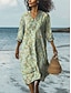 Mulheres Vestido Longo Vestido de turno Vestidos Para o Verão Férias Casual Praia Para Noite Ajuste Largo Gráfico Geométrica Abstrato Manga Longa Decote V Marron Escuro Amarelo Verde Verão Primavera