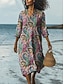 Mulheres Vestido midi Vestido casual Vestidos Boho Chic Boêmia Roupa de rua Evasê Férias Rua Feriado Ajuste Largo Floral Manga Longa Decote V cáqui Verão Primavera