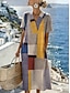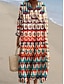 Vestido Midi Feminino Linho Casual Vestido de Verão Vestido em A Vacacional Casual Boho Férias Ajuste Solto Gráfico Geométrico Bloco de Cores Manga Longa Gola em V Azul Laranja Verão Primavera