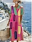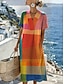 Vestido Maxi Feminino Linho Respirável Leve Vestido de Verão Corte A Férias Casual Boho Lazer Gráfico Geométrico Bloco de Cores Manga Longa Gola V Rosa Laranja Bege Verão Primavera