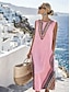 Vestido Maxi Feminino Vestido Casual Vestido de Praia Vestido Floral Vestuário de Rua Fluido Férias Rua Casual Ajuste Regular Color Block Sem Mangas Alça Azul Marinho Azul Roxo Verão