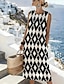 Mulheres Vestido midi Vestido de turno Vestidos Para o Verão Vestido A Line Férias Casual Boho Praia Para Noite Normal Gráfico Geométrica Sem Manga Crewneck Preto Verão Primavera