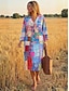 Vestido Midi Feminino Decote em V Manga Longa Kaftan Leve Ajuste Solto Vestido A Linha Casual Boho Para Sair Estampa Gráfica Geométrica Manga Longa Decote em V Azul Fúcsia Laranja Outono