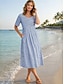 Mulheres Vestido midi Vestido A Line Vestido de verão Casual Diário Normal Listrado Manga Curta Gola Redonda Azul Verão Primavera