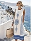 Vestido Midi Feminino Estilo Linho Vestido de Praia Vestido Shift Vestido Em A Casual Boho Praia Saída Ajuste Solto Gráfico Geométrico Sem Manga Decote Redondo Azul Verão Primavera