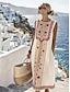Vestido Midi Feminino Linho Casual Vestido de Verão Vestido de Transição Vestido em A Vacacional Casual Boho Praia Saindo Ajuste Solto Gráfico Geométrico Abstrato Sem Mangas Gola Redonda Laranja