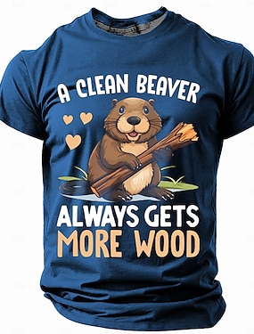 Camiseta Gráfica Masculina Engraçada de Trocadilho do Castor 'Um Castor Limpo Sempre Tem Mais Madeira' Camiseta de Humor de Manga Curta