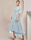 Linha A Assimétrico Longuette Vestido de festa Vestido Coquetel Vestido de convidada de casamento Vestido Para Mãe dos Noivos Meia Manga Scoop pescoço Elegante Formal Convidado do casamento Chiffon