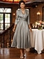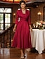 Linha A Longuette Vestido de festa Vestido Coquetel Vestido de convidada de casamento Vestido Para Mãe dos Noivos Meia Manga Decote V Elegante Convidado do casamento Igreja Tecido Que Estica com
