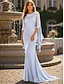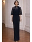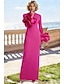 Tubinho Vestidos Longo Vestido de convidada de casamento Vestido formal Vestido de noite Vestido Para Mãe dos Noivos Meia Manga Gola Alta Elegante Simples Casual Formal Chiffon Jacquard Xales com