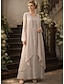 Linha A Vestidos Até o Tornozelo Vestido Coquetel Vestido de convidada de casamento Vestido Para Mãe dos Noivos Meia Manga Decote Canoa Elegante Casual Assimétrico Formal com Bordado Apliques