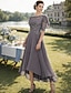 Vestido de Festa Comprimento Chá A-Line Vestido de Coquetel Vestido de Convidada de Casamento Vestido da Mãe da Noiva Manga 3/4 Decote Redondo Elegante Vintage Formal Renda com Renda