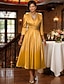 Linha A Longuette Vestido de festa Vestido Coquetel Vestido de convidada de casamento Vestido Para Mãe dos Noivos Meia Manga Decorado com Bijuteria Elegante Vintage Convidado do casamento Festa de