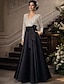 Linha A Longo Bordado com miçangas Vestido de convidada de casamento Vestido formal Vestido Para Mãe dos Noivos Meia Manga Colarinho de Camisa Elegante Formal Convidado do casamento Cetim com Laço(s