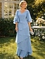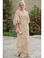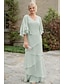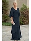 Duas Peças Linha A Longo Vestido de convidada de casamento Vestido formal Tiered Dress Vestido Para Mãe dos Noivos Meia Manga Decote V Elegante Embrulho incluido Convidado do casamento Festa de