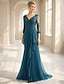 Sereia Longo Vestido de convidada de casamento Vestido formal Vestido de noite Vestido Para Mãe dos Noivos Manga 3/4 Decote V Elegante Formal Convidado do casamento Noite Formal Chiffon com Pregas