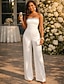 Macacões Vestido Elegante Convidada de Casamento Baile Comprimento até o Chão Sem Mangas Sem Alças Tecido Stretch com Lantejoulas Cor Pura