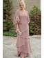 Linha A Traje de 3 peças Terno-calça Longo Vestido Para Mãe dos Noivos Sem Manga Manga Longa Com Alças Finas Elegante Formal Convidado do casamento Chiffon Renda de Cordão Embrulho incluido com Renda