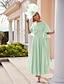 Linha A Longuette Vestido de festa Vestido Coquetel Vestido de convidada de casamento Vestido Para Mãe dos Noivos Manga Curta Decote V Elegante Formal Convidado do casamento Noite Formal Chiffon com