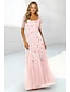 Linha A Vestidos Até o Tornozelo Vestido de festa Vestido Coquetel Vestido de convidada de casamento Vestido Para Mãe dos Noivos Manga Curta Barco Pescoço Elegante Formal stretch chiffon com Renda