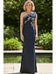 Tubinho Longo Vestido formal Vestido de noite Vestido Para Mãe dos Noivos Sem Manga Assimétrico Elegante Vintage Formal Cetim com Laço(s) Bordado
