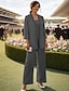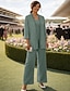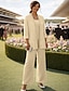 Conjunto de Calças Longo Vestido para Mãe da Noiva Manga Longa Decote Redondo Elegante Simples Convidada de Casamento com Cor Sólida