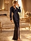 Sereia Longo Bordado com miçangas Vestido de convidada de casamento Vestido formal Vestido Para Mãe dos Noivos Manga Longa Decote Canoa Elegante Formal Convidado do casamento Crepe Esticado com