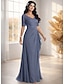 Vestido de Festa Comprido A-Line para Convidadas de Casamento Vestido Formal Vestido para Mãe da Noiva Manga Curta Decote em V Elegante Vintage Chiffon com Pregas
