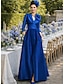 Linha A Longo Até o Tornozelo Vestido de festa Vestido Coquetel Vestido de convidada de casamento Vestido Para Mãe dos Noivos Manga Longa Decote V Elegante Minimalista Formal Convidado do casamento