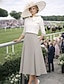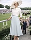 Sereia Vestidos Assimétrico Longuette Vestido de festa Vestido Coquetel Vestido de convidada de casamento Vestido Para Mãe dos Noivos Meia Manga Decorado com Bijuteria Elegante Vintage Formal