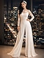 Terno-calça Assimétrico Vestido Para Mãe dos Noivos Manga Longa Gola Redonda Elegante Formal Convidado do casamento Noite Formal Chiffon com Cor Única