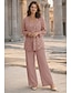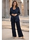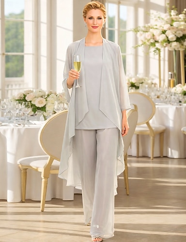 Traje de 3 peças Terno-calça Longo Vestido Para Mãe dos Noivos Manga Longa Decote Canoa Elegante Minimalista Formal Convidado do casamento Feriado Chiffon Embrulho incluido com Flor