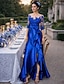 Sereia Assimétrico Vestido de convidada de casamento Vestido formal Vestido de noite Vestido Para Mãe dos Noivos Meia Manga Decorado com Bijuteria Elegante Floral Convidado do casamento Outono Cetim