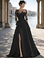 Linha A Cauda Corte Vestido de convidada de casamento Vestido formal Vestido Flare Vestido Para Mãe dos Noivos Manga 3/4 Decorado com Bijuteria Vestido preto Split alta Convidado do casamento Outono