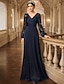 Linha A Longo Vestido de convidada de casamento Vestido formal Vestido de noite Vestido Para Mãe dos Noivos Manga Longa Decote V Elegante Baile de Formatura Festa de Noite Casamento Chiffon com Pregas