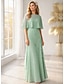 Linha A Vestidos Longo Vestido de convidada de casamento Vestido formal Vestido de noite Vestido Para Mãe dos Noivos Manga Curta Gola Redonda Elegante Simples Casual Formal Chiffon Xales com Miçangas