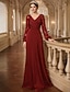 Linha A Longo Vestido de convidada de casamento Vestido formal Vestido de noite Vestido Para Mãe dos Noivos Manga Longa Decote V Elegante Simples Minimalista Formal Convidado do casamento Cetim Paetês