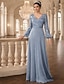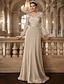 Linha A Longo Vestido Para Mãe dos Noivos Manga 3/4 Decote Canoa Elegante Vintage Embelezado Formal Chiffon Renda com Miçangas Babados em Cascata