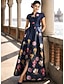 Linha A Longo Vestido de convidada de casamento Vestido formal Vestido Flare Vestido Para Mãe dos Noivos Manga Curta Decote V Split alta Mãe da noiva Formal Convidado do casamento Cetim com Estampa