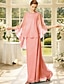 Duas Peças Terninho Longo Vestido Para Mãe dos Noivos Manga Longa Decorado com Bijuteria Elegante Formal Convidado do casamento Chiffon Embrulho incluido com Renda Fru-Fru Cor Única