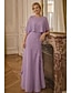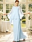Conjuntos de Vestidos Longos Vestido de Convidada de Casamento Vestido da Mãe da Noiva Manga Longa Decote Redondo Elegante Simples Convidada de Casamento com Cor Sólida