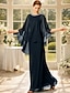 Vestido de Convidada de Casamento A-Line Sheath Column Comprimento Longo Vestidos Formais Vestido de Noite Vestido Mãe da Noiva Manga Longa Decote Redondo Elegante Formal Convidada de Casamento com