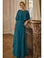 A-Line Vestido de Festa Comprimento Tornozelo Vestido de Coquetel Vestido de Convidada de Casamento Vestido da Mãe da Noiva Manga 1/2 Decote Redondo Elegante Vintage Formal com Bordado