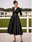 Linha A Até o Tornozelo Vestido de festa Vestido Coquetel Vestido de convidada de casamento Vestido Para Mãe dos Noivos Meia Manga Decote V Elegante Vestido preto Noite Formal Festa de Casamento com