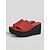 Sandálias plataforma femininas vermelhas com salto anabela – cabedal em tecido de malha elástica, estilo casual moderno para uso diário, viagens, compras, férias na praia e passeios de verão.