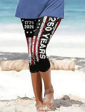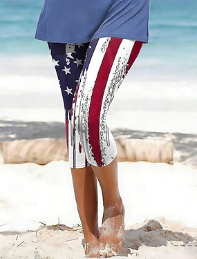 Dia da Independência Aniversário Americano Leggings Femininas Férias Estilo Étnico Vintage Comprimento do Tornozelo Cintura Alta Calças Gráficas Bandeira Conforto Suave Confortável Elástico Diário