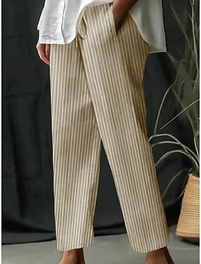 Mulheres Linho de algodão sintético Calças Esportivas chinês Calça verão Férias Moda Roupa de rua Comprimento total Cintura Alta Tecido Bolsos Cintura elástica Confortável Conforto Macio Com Stretch