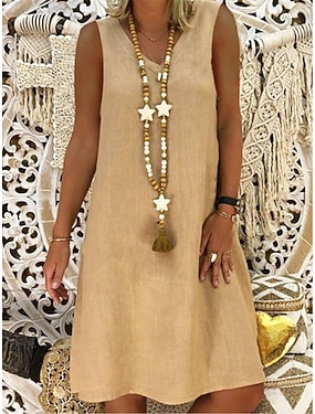 Mulheres Minivestido Linho de algodão sintético Vestido de turno Vestidos Para o Verão Vestido casual Básico Moderno Diário Férias Final de semana Ajuste Largo Tecido Sem Manga Halter pescoço Marron